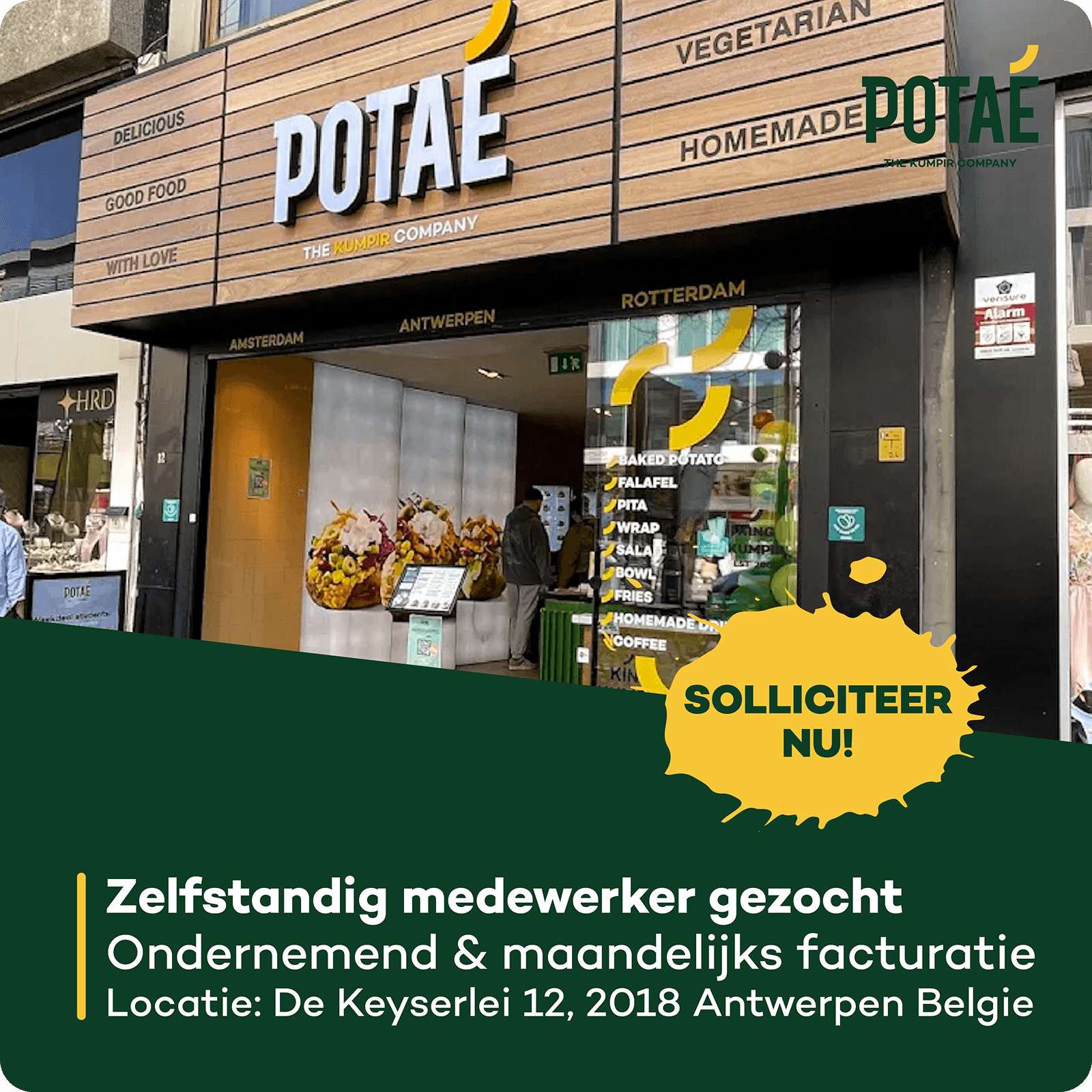 Sinds 2004 is Potaté een gevestigde naam op het gebied van vegetarisch eten. Het franchiseconcept, gespecialiseerd in gepofte aardappelen, groeide in korte tijd uit naar 8 vestigingen. Met die groei ontstond ook een toenemende behoefte aan personeel — vooral in de zomerperiode, wanneer vakantieplanning extra druk legt op de bezetting.